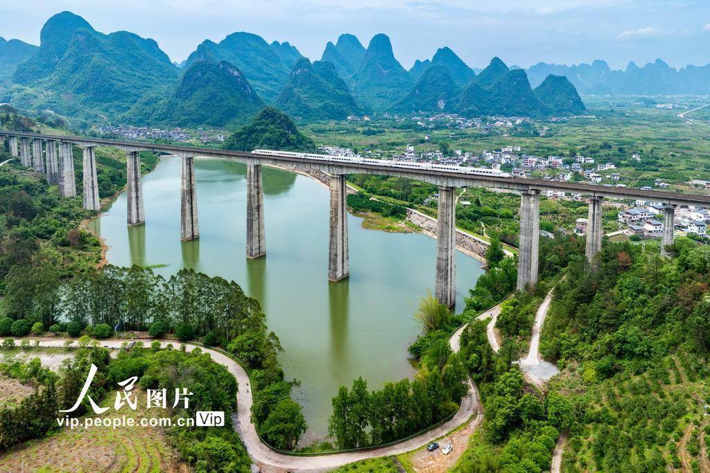 近日澳门银河游戏app平台,广西桂林市阳朔县兴坪镇,列车行驶在幸福源水库双线特大桥,与喀斯专诚貌、多彩野皮毛映澄净。黄胜林摄(东谈主民图片网)