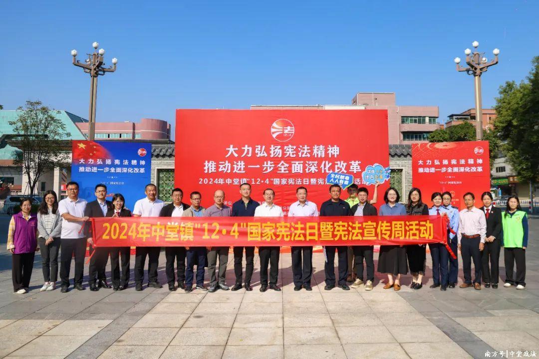 12月4日是第十一个国度宪法日。当日,中堂镇开展“猖獗阐发宪法精神 推动进一步全面深化窜改”2024年“12·4”国度宪法日暨宪法宣传周行为,猖獗阐发宪法精神,成立宪法巨擘,推动中堂镇宪法学习宣传造成新昌盛。