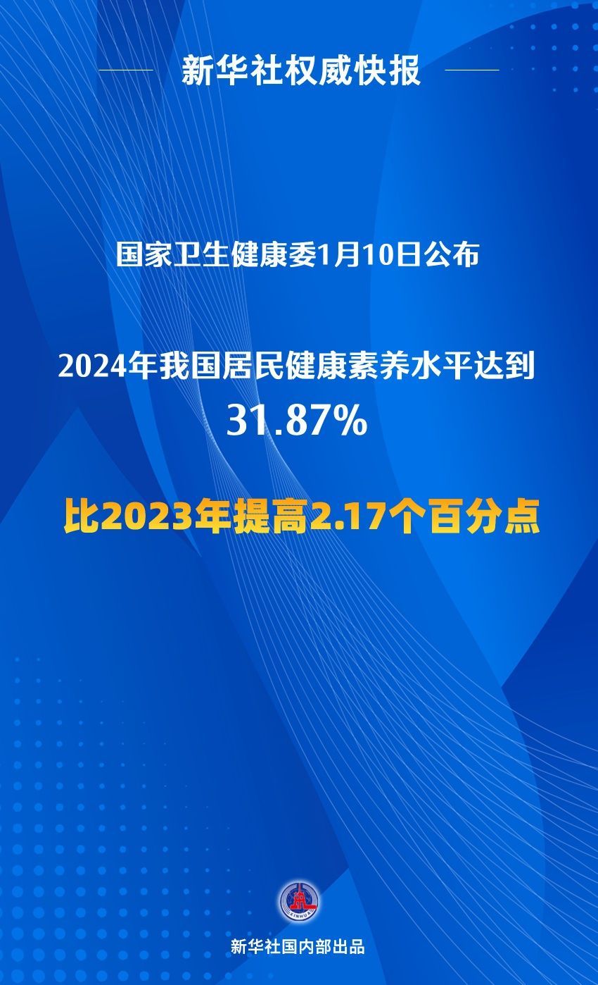 记者1月10日从国度卫生健康委了解到,2024年我国住户健康教育水平达到31.87%,比2023年擢升2.17个百分点。