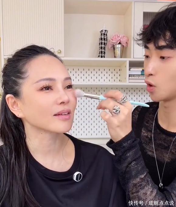 因为是学艺术配置,恩利关于化妆想象好意思术方面齐是如臂使指,有模有样,最终为伊能静打造了一个网红妆容。