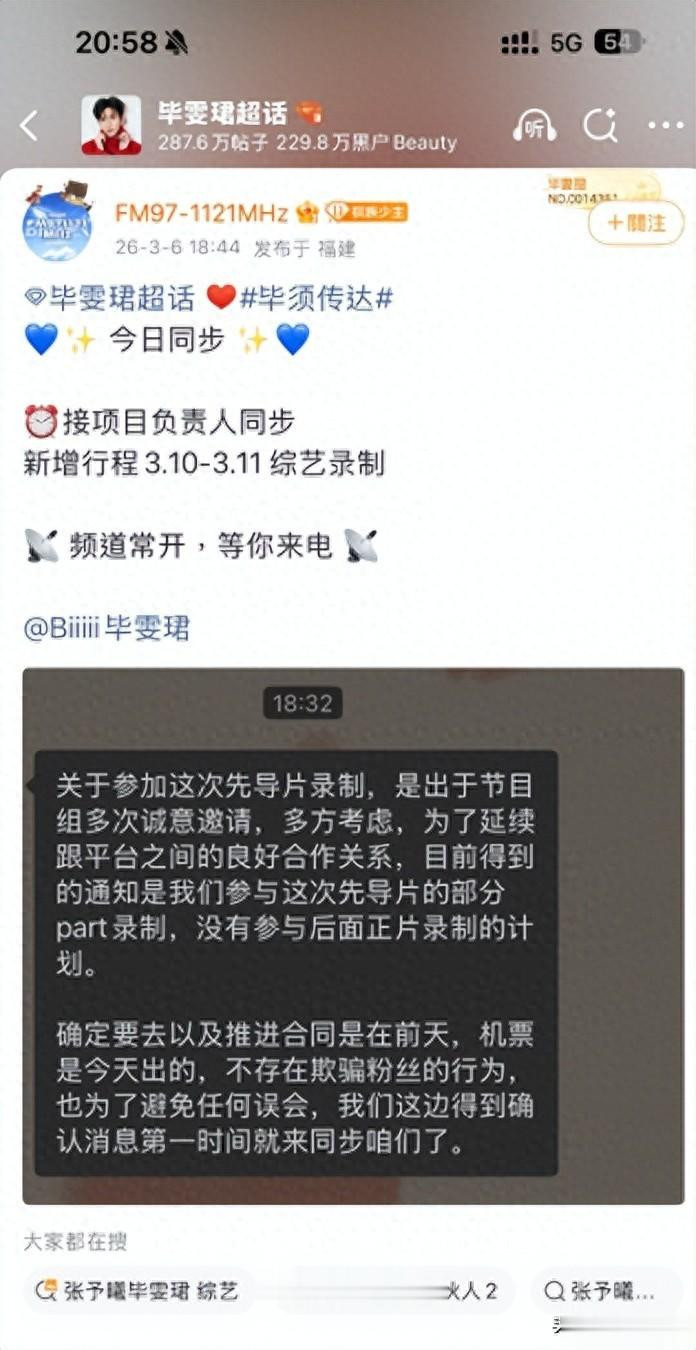 2026年3月,文娱圈迎来“双喜临门”——毕雯珺与张予曦主演的剧集《深情眼》达成满一周年之际,两东谈主官宣将于3月10日至11日合体录制综艺《纽约合资东谈主》第二季先导片!音信一出,#毕雯珺张予曦合体...