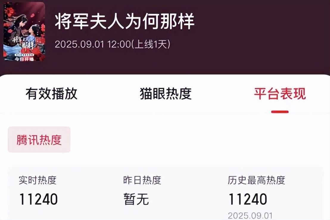 《将军夫东谈主为何那样》上线鹅厂,首播仅20分钟热度飙升破11000,看来如故短剧更得东谈主心。