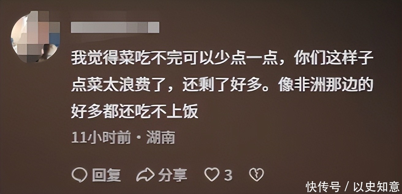 26. 有网友直言,即便生存豪阔也不成任意奢侈品食粮。哪怕是为了拍视频后果,也应量力点餐。念念到非洲仍有大齐东说念主口靠近饥饿逆境,这种行动简直辨别时宜,违背“光盘行动”的认识精神。