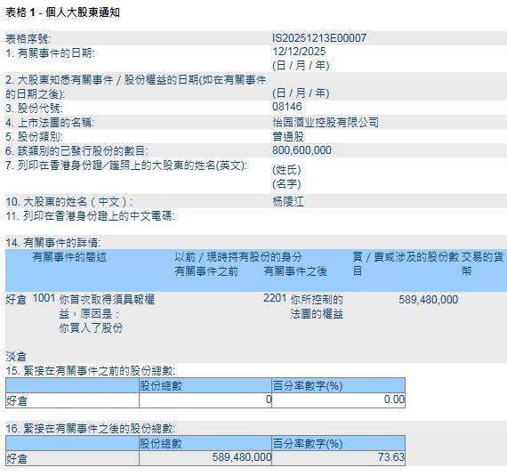 这次往来早有迹象。12月10日,怡园酒业少顷停牌,“以待刊发量度本公司内幕音信及字据香港公司收购及团结守则而作出的公告”。不外规章发稿,怡园酒业尚未公布上述股权往来信息及细节。